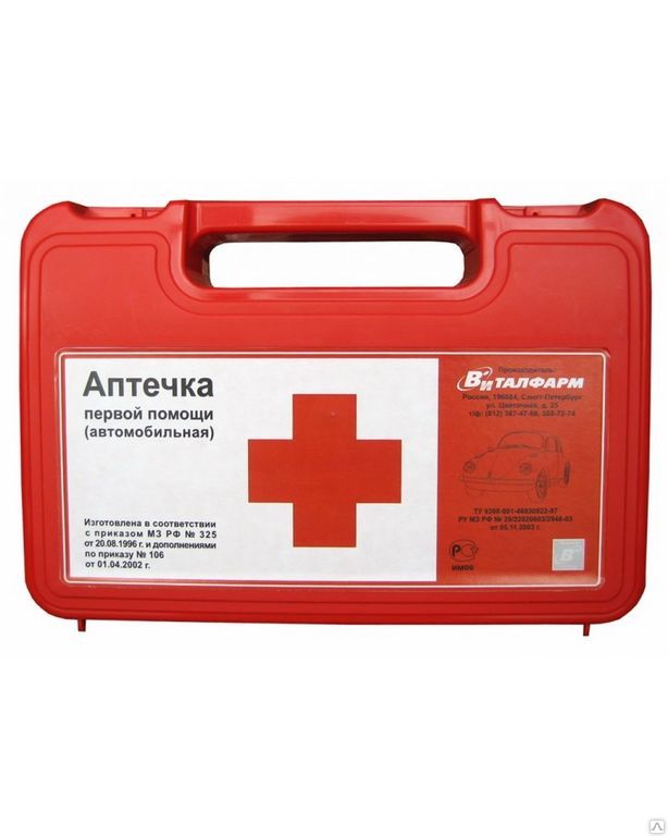 Срок годности всех содержащихся в аптечке средств не может быть превышен. Допускается хранение аптечки в пластиковом, металлическом или текстильном футляре. В каталоге компании «Фирст» имеются полностью соответствующие всем требованиям автомобильные аптечки для предприятий и частных лиц, цена на которые указана в каталоге под каждым товаром. Для заказа свяжитесь с менеджером по телефону +7 (863) 333-22-56.