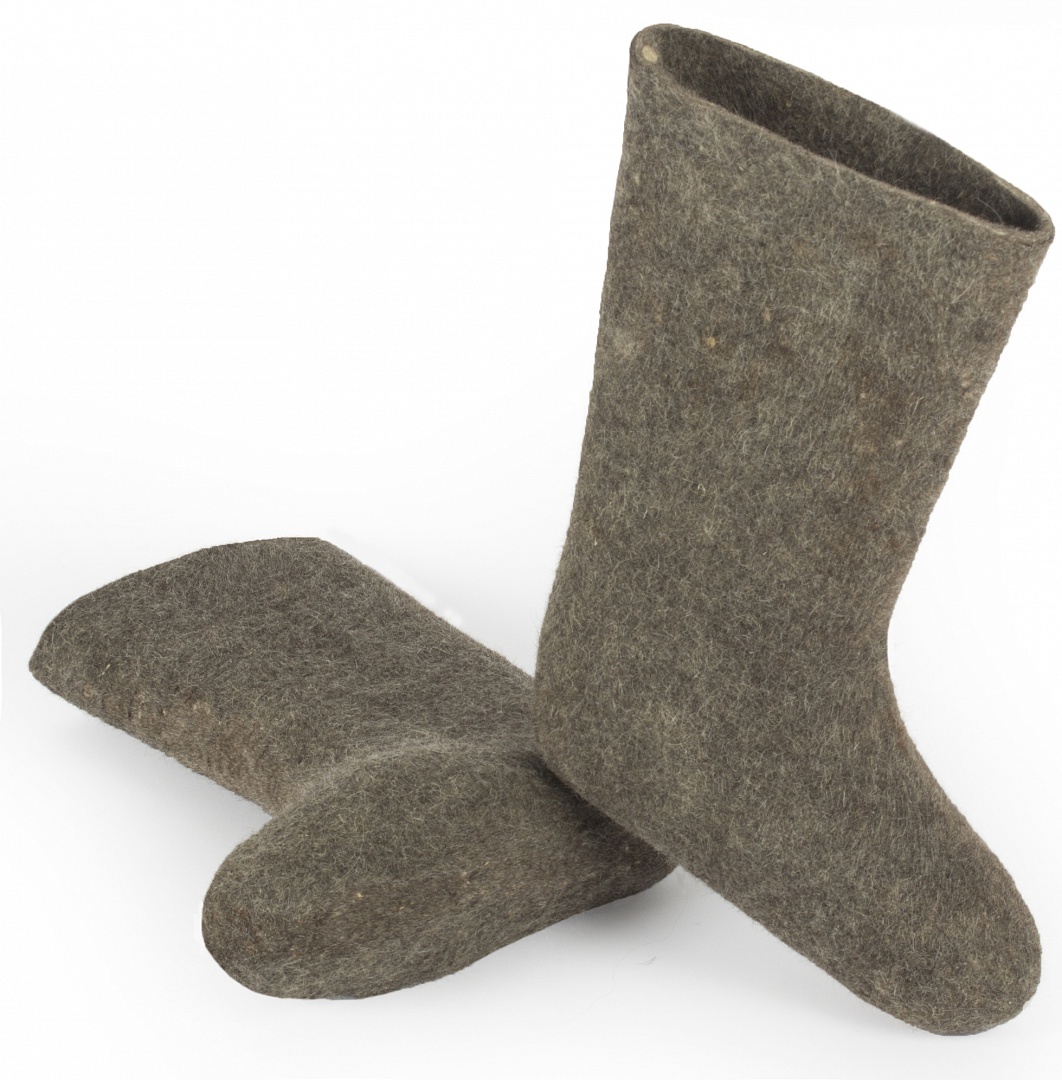Изделие создано из грубой шерсти, обладающей выраженными теплоизоляционными свойствами. Благодаря плотной структуре волокон материал удерживает тепло и создает оптимальный микроклимат внутри обуви даже в условиях сильного холода.
