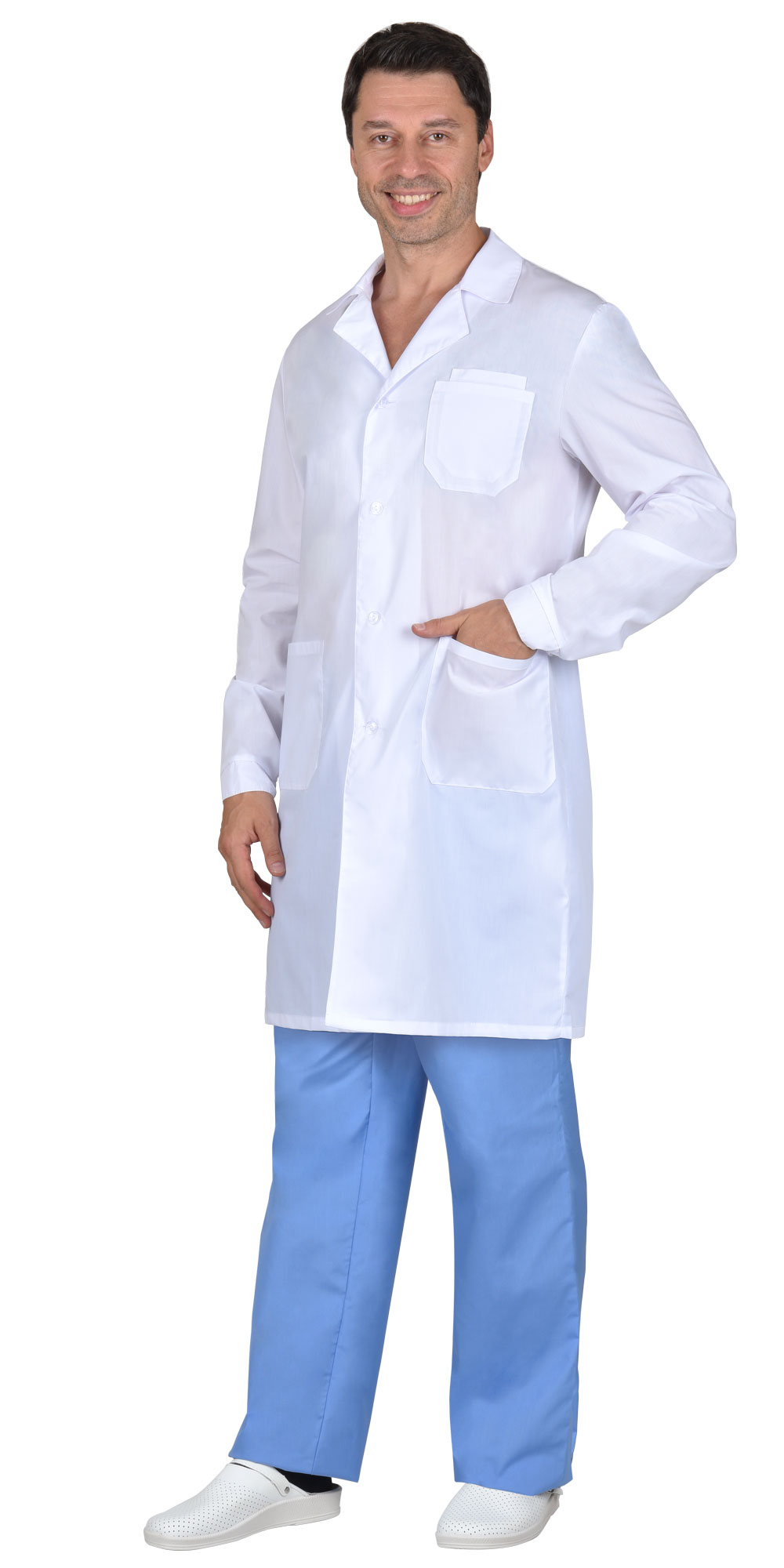 Халат "ГЛАВВРАЧ" в белом цвете разработан для специалистов медицинских учреждений, включая врачей, лаборантов, сотрудников, работающих в помещениях с повышенными санитарно-гигиеническими требованиями.