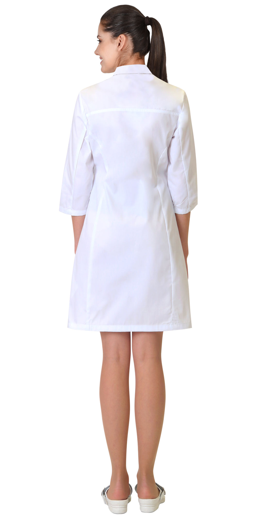 Отложной воротник не не препятствует поворотам головы и создаёт профессиональный внешний вид. Рукава ¾ предотвращает контакт рукавов с медицинскими приспособлениями и рабочими поверхностями.