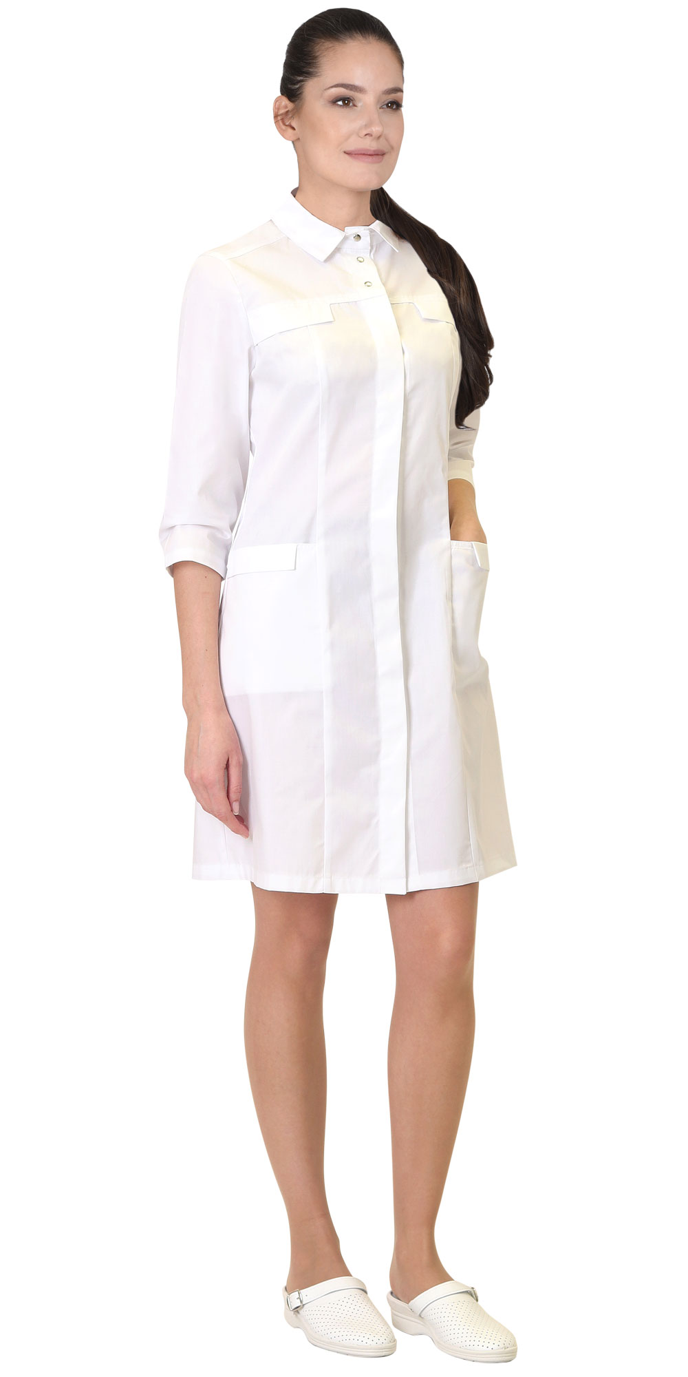Женский халат "ОПТИМА" в белом цвете разработан с учётом требований специалистов в сфере здравоохранения. Он подойдёт для врачей, медицинских сестёр, лаборантов и работников различных медкабинетов.