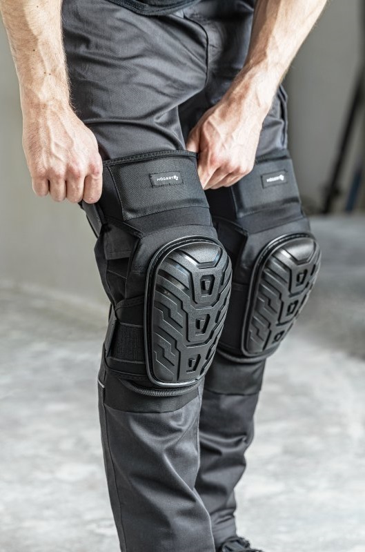 Внешние накладки изготовлены из ПВХ, который эффективно защищает колени от ударов, падений и механических повреждений. Этот материал долговечен и легко выдерживает нагрузки, возникающие при работе на жёстких или неровных поверхностях.