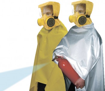 Плащ-накидка изготовлена из негорючей огнеупорной ткани, что позволяет тушить малые очаги горения. Изделие выполнено в формате пончо из водо-, огне- термостойкой стеклоткани. В дополнение, материал устойчив к воздействию агрессивных жидкостей.