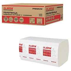Полотенца бум. (1 пачка 200 листов) LAIMA (H3) PREMIUM UNIT PACK, 2-сл, 21х21,6, V-сложение, 112140