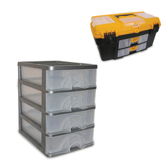 В нашем каталоге представлен широкий выбор систем хранения. Вы найдете ящики для инструментов различных размеров, с различным количеством отделений и дополнительными функциями. Мы предлагаем, как компактные решения для небольшого набора инструментов, так и большие ящики для профессионального использования.
