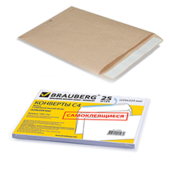 Конверты С4 (229х324мм), отрывная лента, 100г/м2, КОМПЛЕКТ 25шт, BRAUBERG, 121852