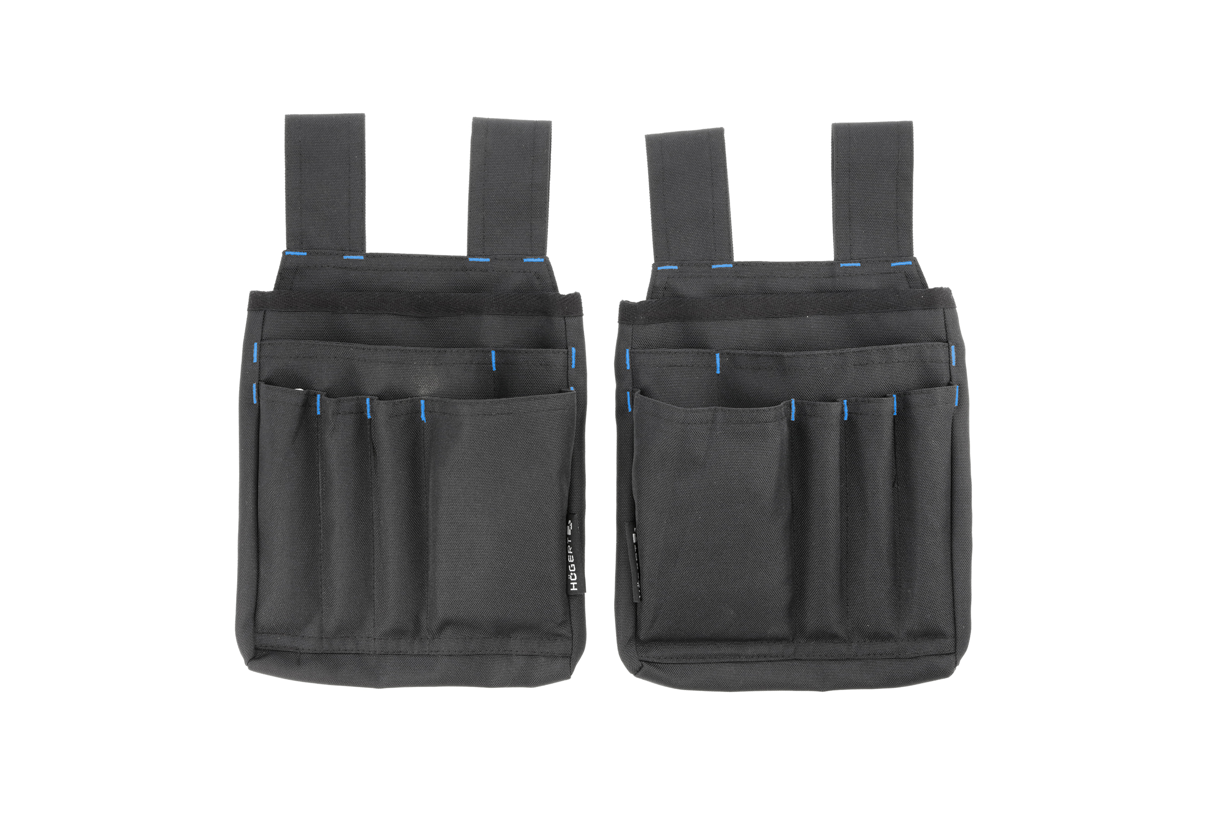 Комплект включает два кармана, что обеспечивает дополнительное удобство. В верхней части каждого кармана расположена большая главная ячейка. Средняя часть оснащена двумя ячейками, а в нижней части предусмотрены четыре компактных отделения, что позволяет эффективно распределить инструменты и мелкие детали.