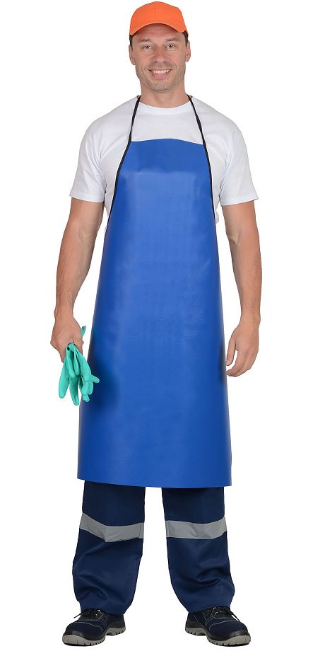 Фартук ПВХ в синем цвете создан для работы в условиях, где требуется усиленная защита одежды и тела работника от воздействия различных жидкостей.