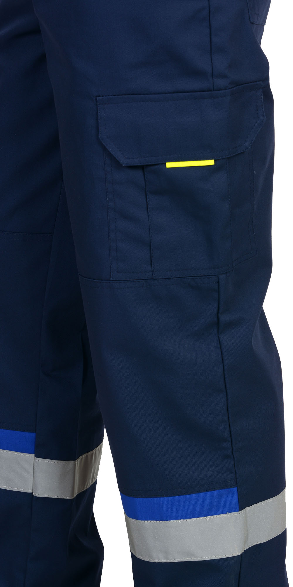 Для повышения безопасности в условиях плохой видимости брюки оборудованы светоотражающими элементами. Они обеспечивают хорошую видимость работника в тёмное время суток или при работе рядом с движущимися механизмами.