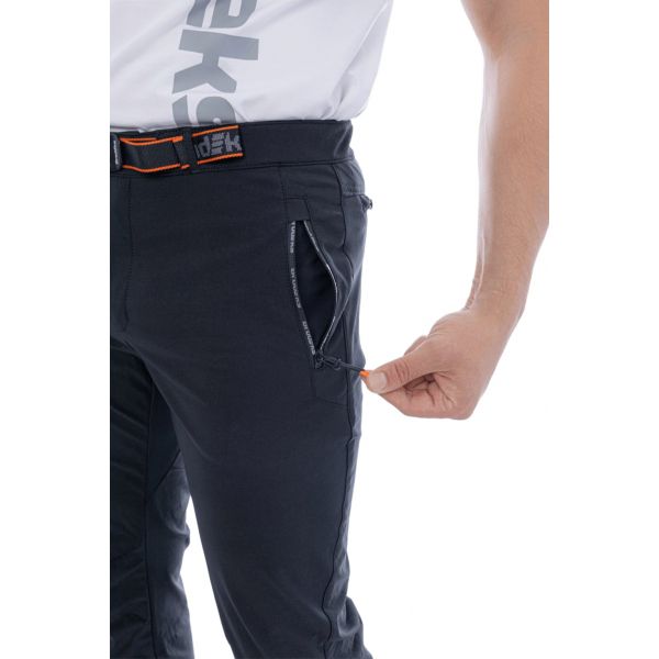Брюки изготовлены из трикотажной ткани плотностью 250 г/м², содержащей 91% нейлона и 9% спандекса. Материал отличается высокой эластичностью и обеспечивает растяжение в четырёх направлениях. Благодаря этому брюки легко возвращают форму после растяжения и не деформируются при активном использовании. Ткань быстро сохнет, отталкивает влагу и защищает от ультрафиолетовых лучей. В дополнение, воздухопроницаемость делает их комфортными для длительного ношения.