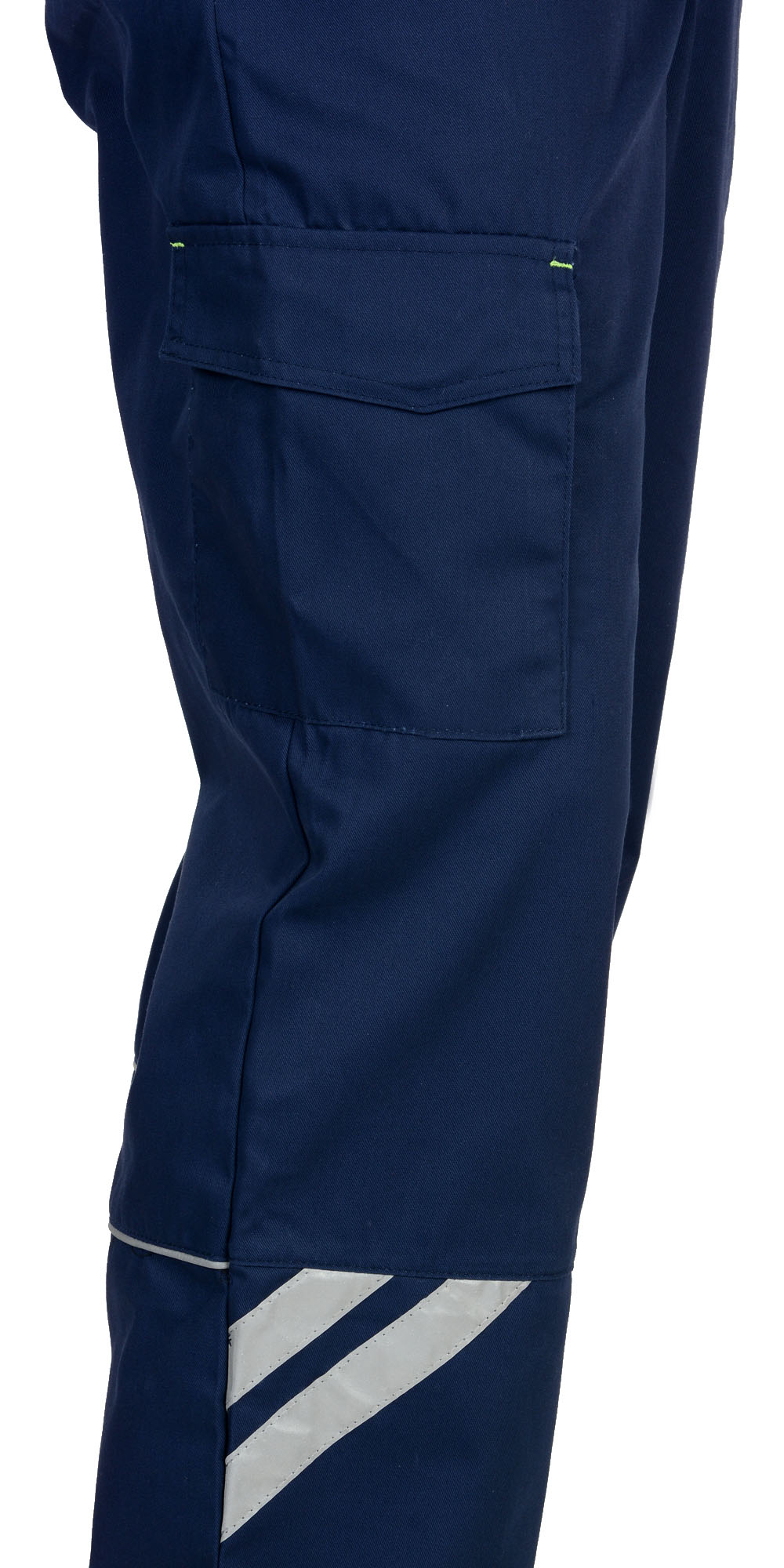 Для повышения видимости и безопасности при работе в условиях недостаточной освещённости брюки оснащены светоотражающими полосами и кантами. Они обеспечивают дополнительную защиту, делая работника заметным в тёмное время суток или в зонах с движением техники.