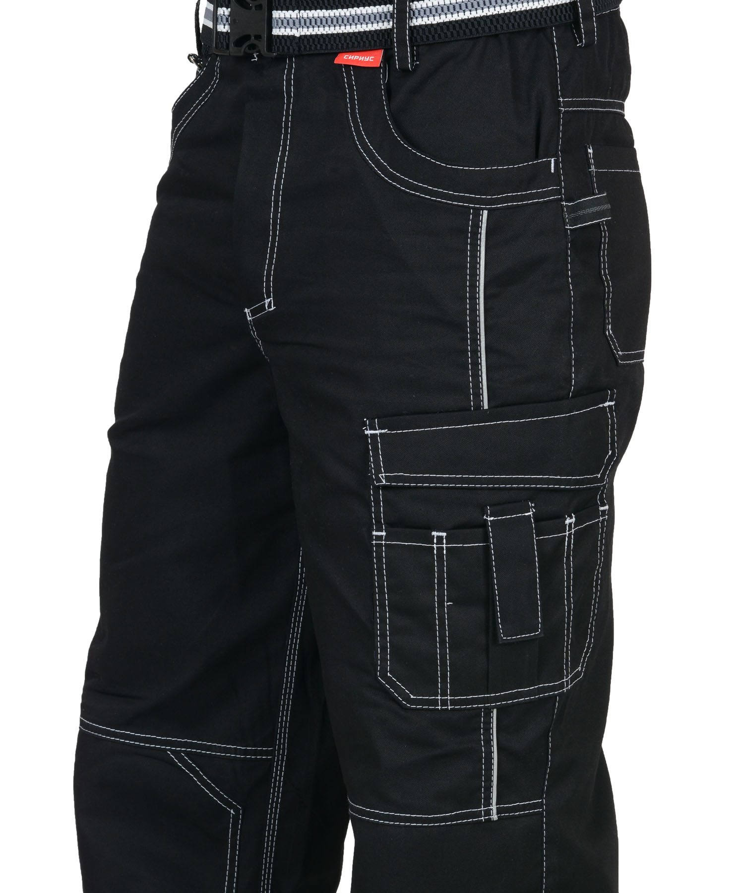 Пояс частично стянут эластичной лентой, что обеспечивает комфортную посадку. Светоотражающий кант создан для повышения безопасности профессионала в условиях слабой видимости.