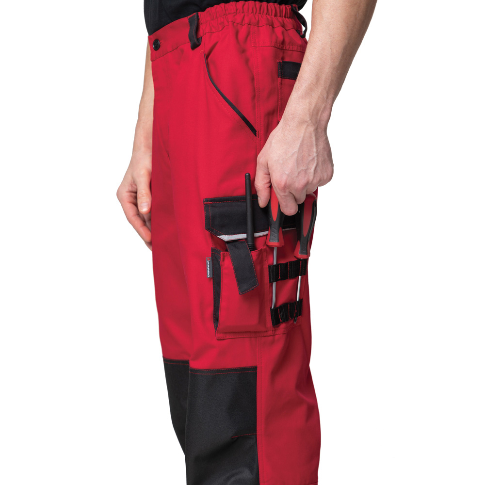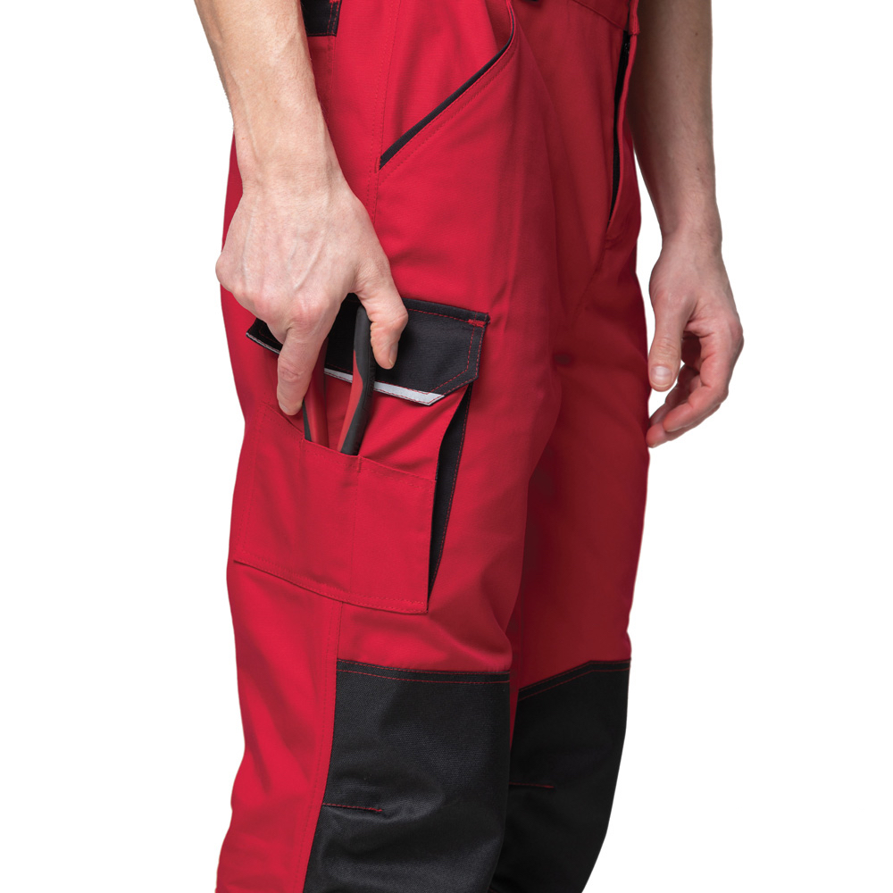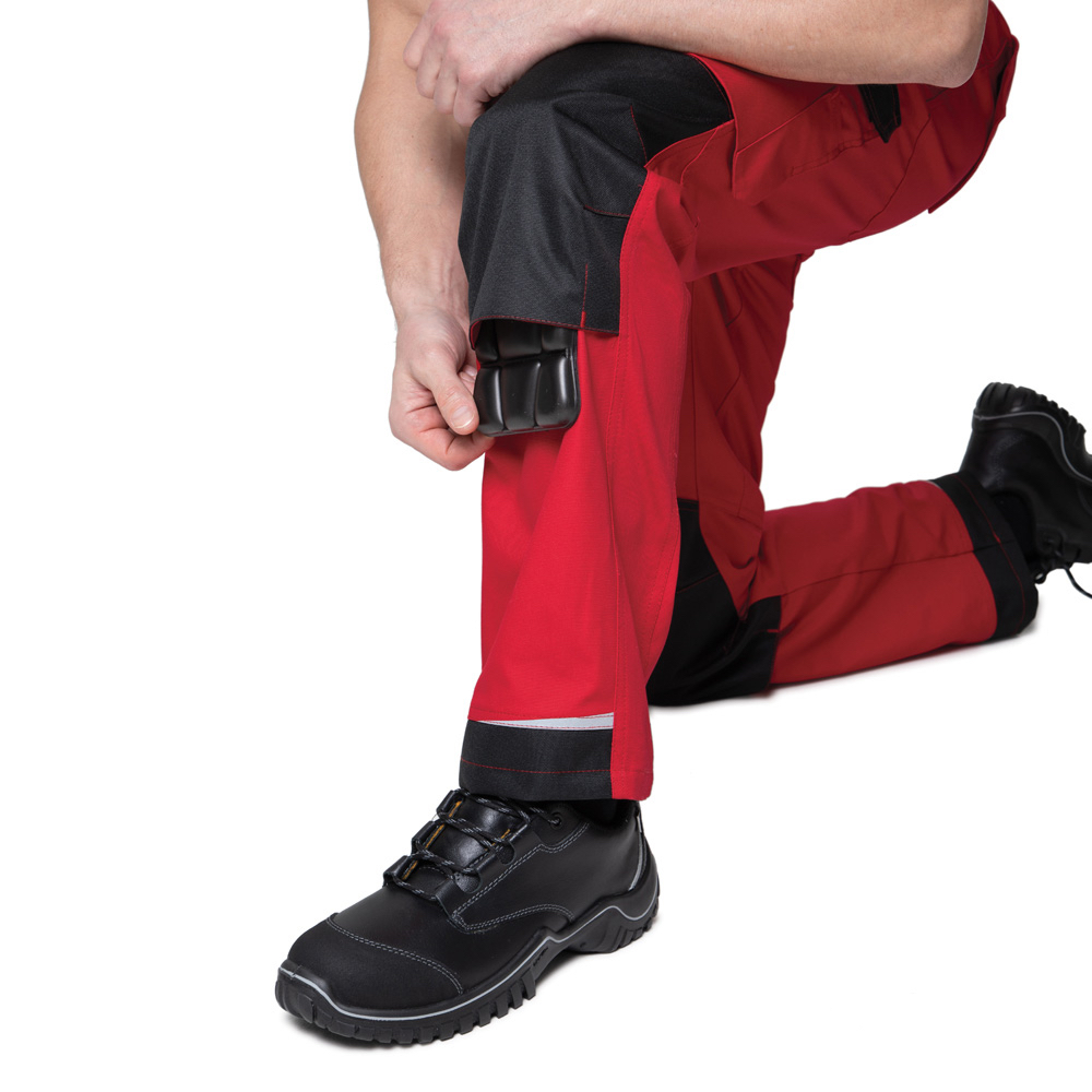 Объёмные наколенники с карманами для амортизационных накладок, доступ к которым осуществляется через застёжки на липучках, обеспечивают дополнительную прочность изделию и удобство при работе с упором на колени.