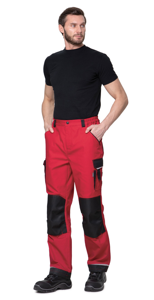 Усилительные детали по низу брючин защищают материал от преждевременного износа при контакте с обувью или рабочими поверхностями.