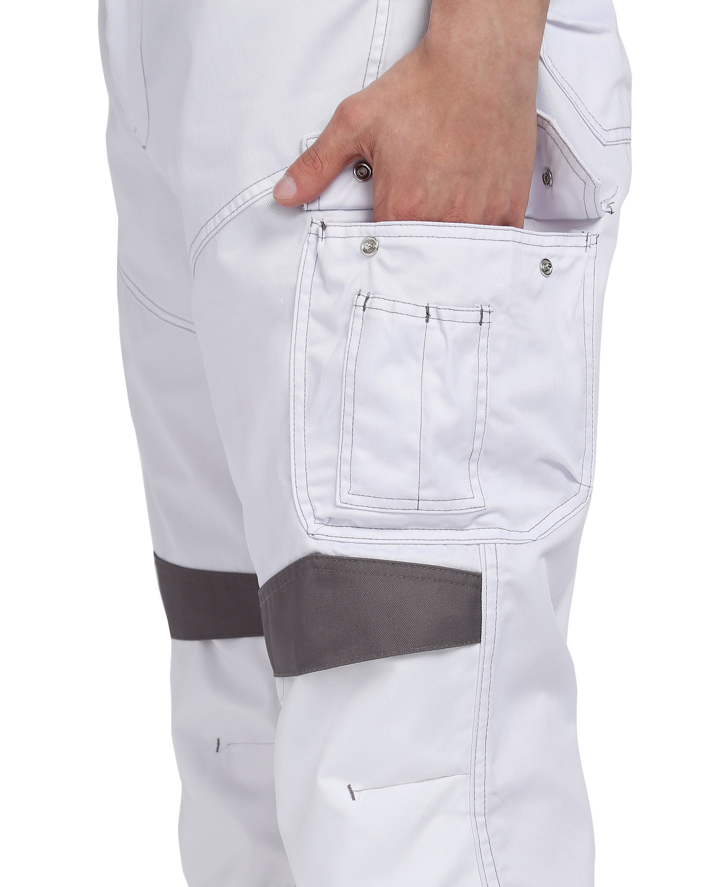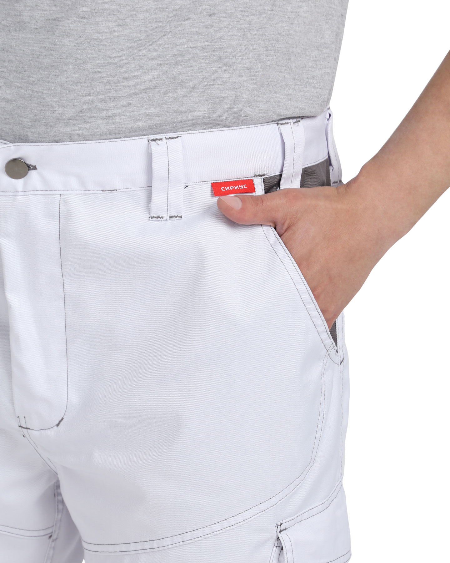 Брюки "ЦИТРИН" в белом цвете с серыми вставками станут надёжным выбором для тех, кто ценит долговечность, практичность и удобство.