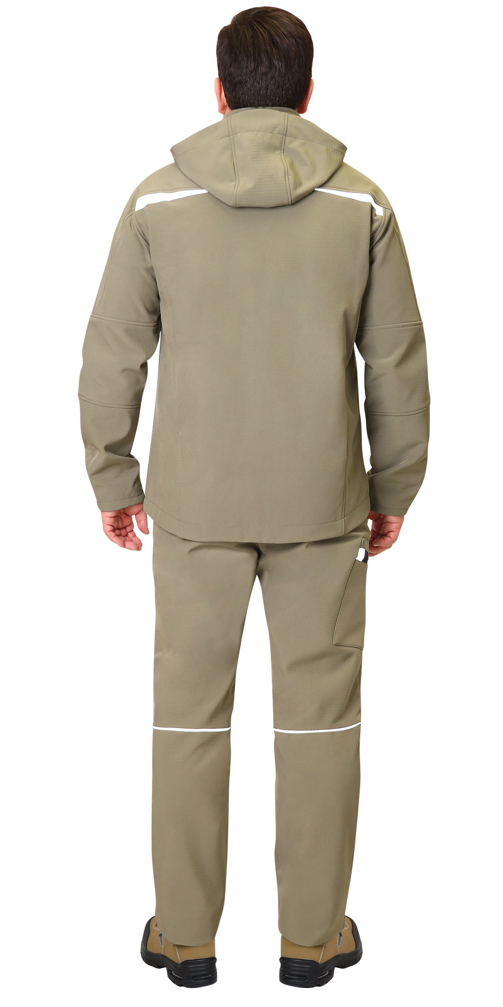 Съёмный капюшон, пристегивающийся на кнопки, защищает голову от лёгких осадков и порывистого ветра. Светоотражающие полосы улучшают видимость работника в тёмное время суток или в условиях плохой видимости, повышая безопасность на рабочем месте.