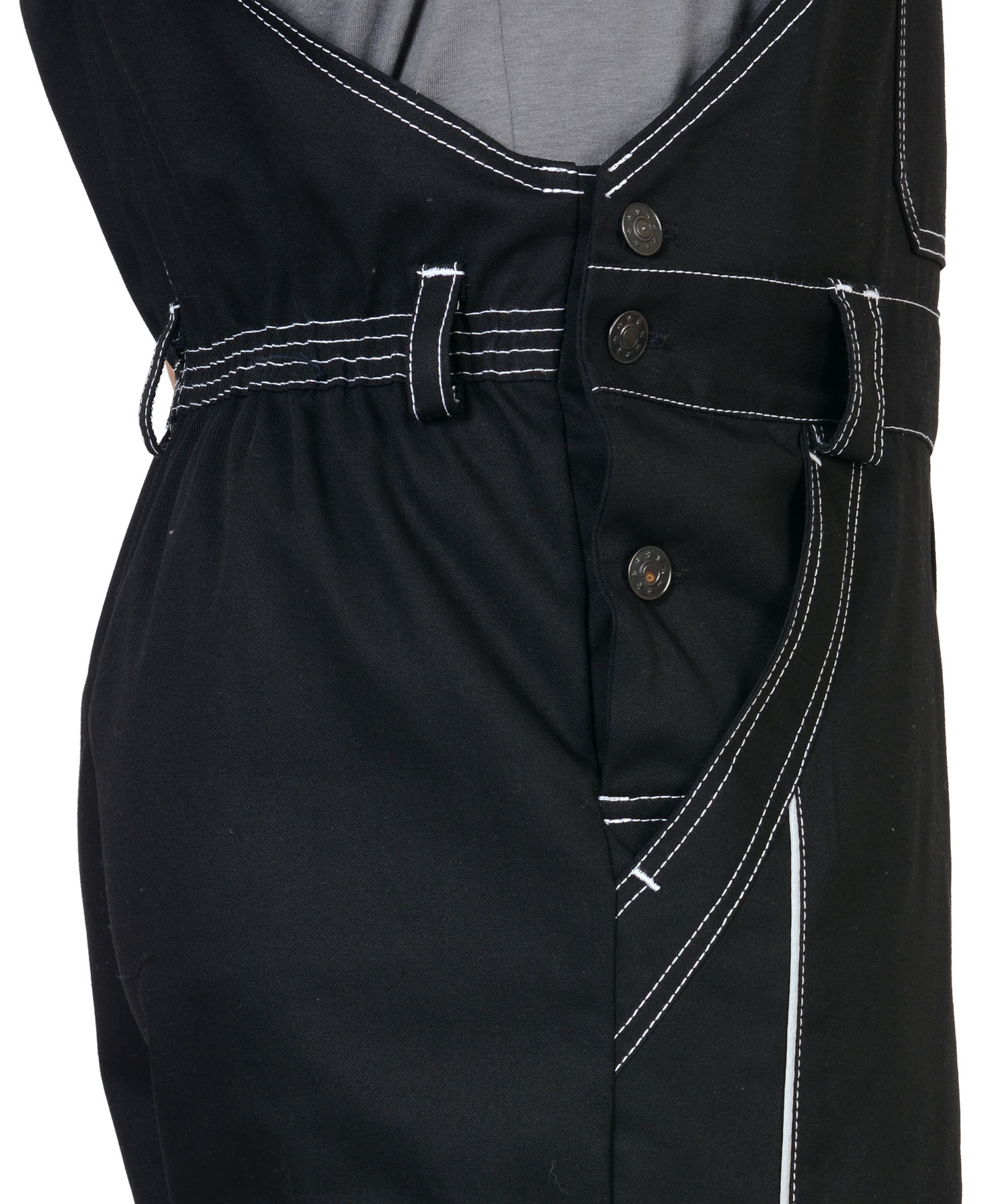 Частичная стяжка сзади по талии с эластичной вставкой помогает полукомбинезону лучше сидеть по фигуре, исключая соскальзывание. Дополнительные усилительные накладки в области коленей продлевают срок службы изделия, что особенно актуально для работников, которые часто выполняют задачи на низком уровне.