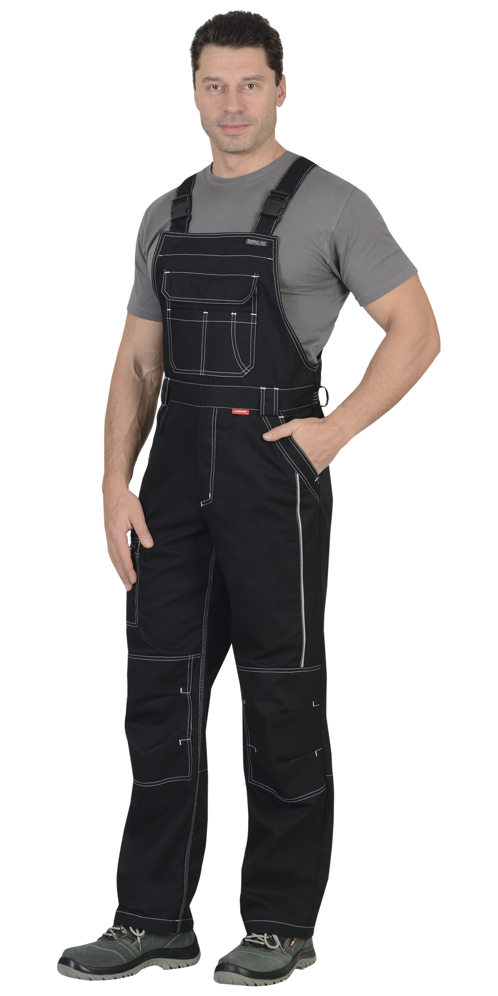 Эластичные бретели с застёжками-фастексами обеспечивают индивидуальную подгонку под рост работника. Надёжный фиксатор позволяет легко натянуть бретели до необходимого уровня, предотвращая их ослабление. Застёжки-фастексы быстро защёлкиваются, а благодаря эластичности бретели не создают дискомфорта при длительной носке.