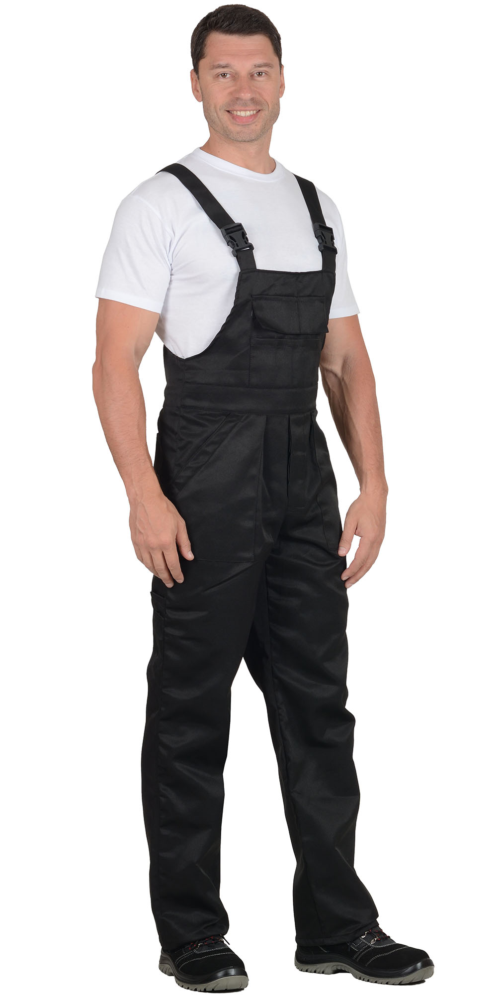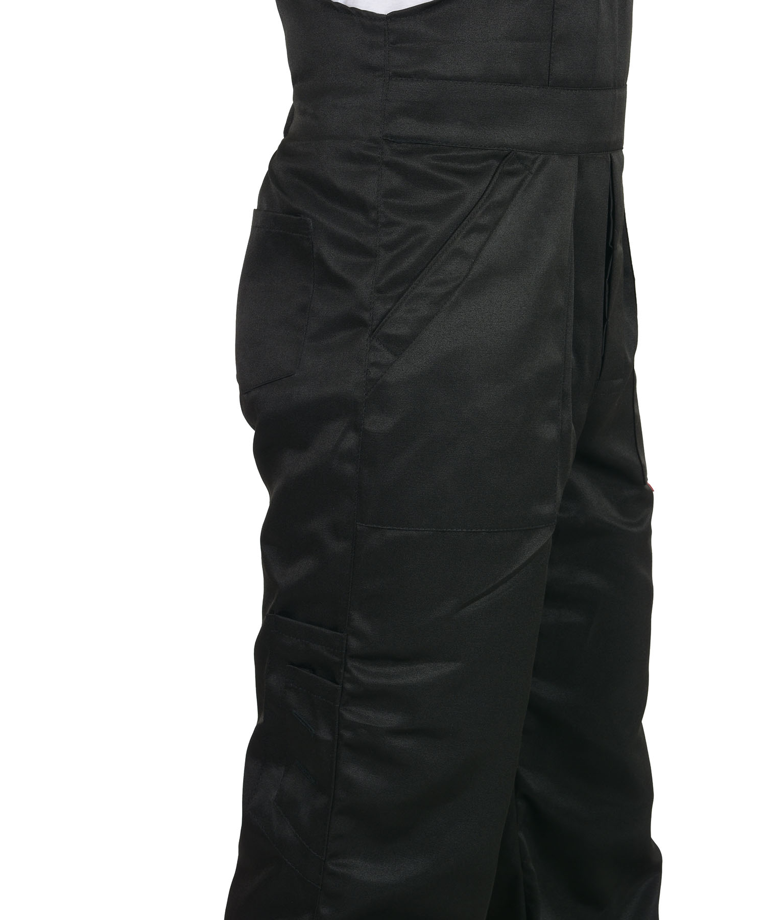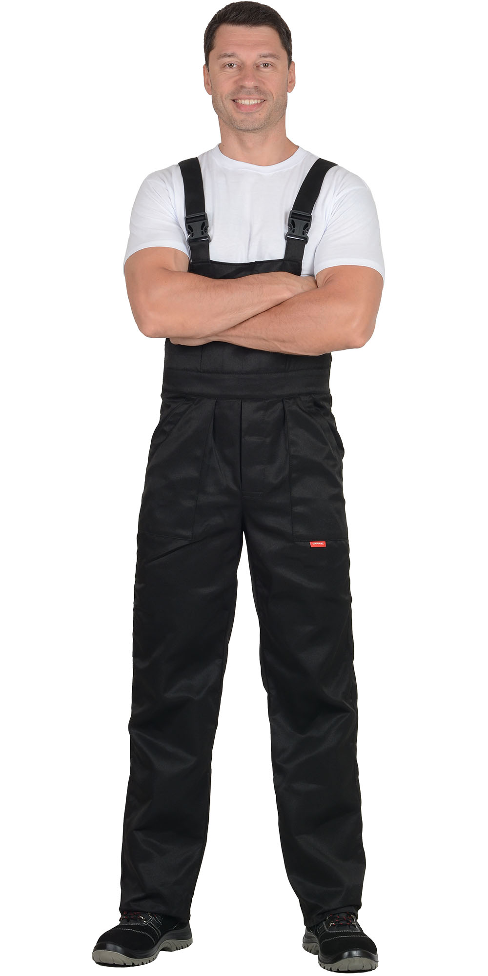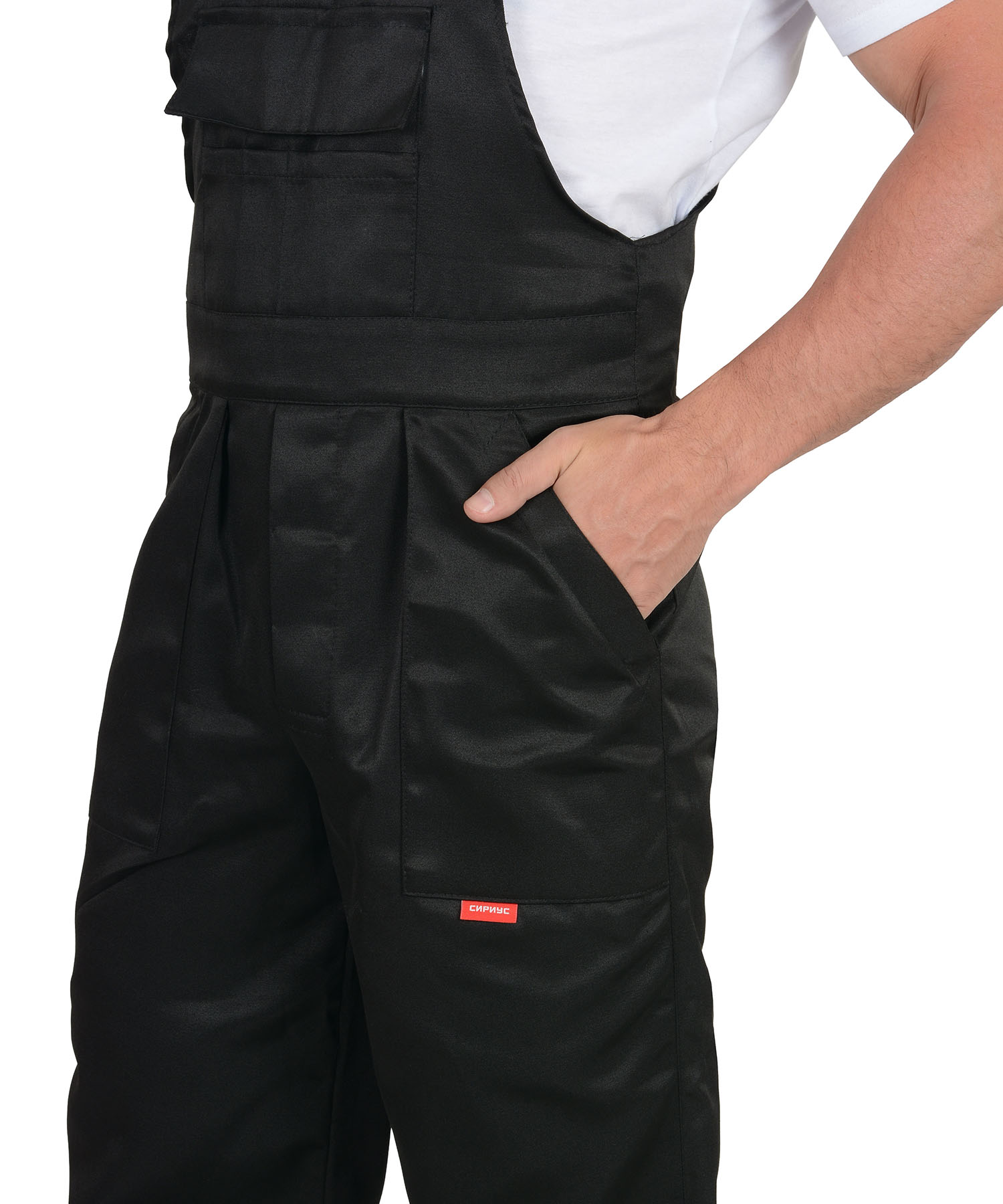 Полукомбинезон «СИРИУС-ПРОФЕССИОНАЛ» в черном цвете изготовлен из современной смесовой ткани, состоящей из 80% полиэстера и 20% хлопка.