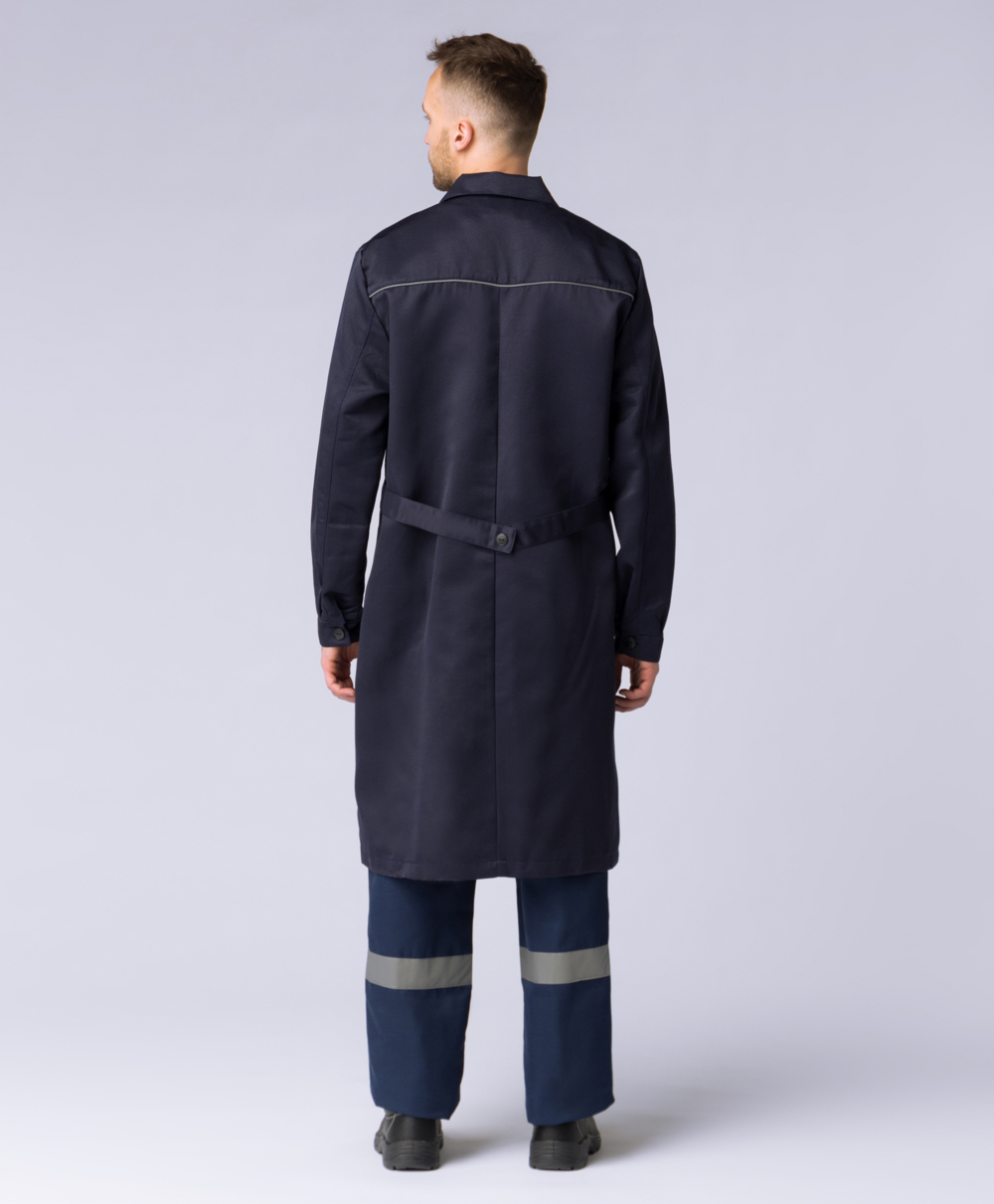- объём по линии талии регулируется сзади при помощи хлястика с пуговицей;