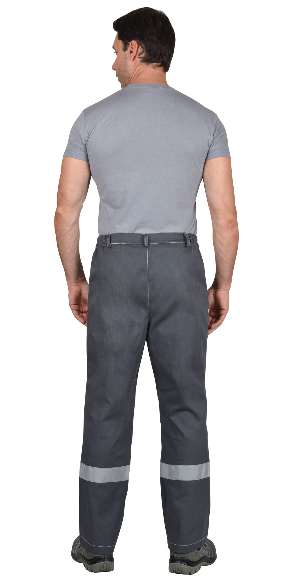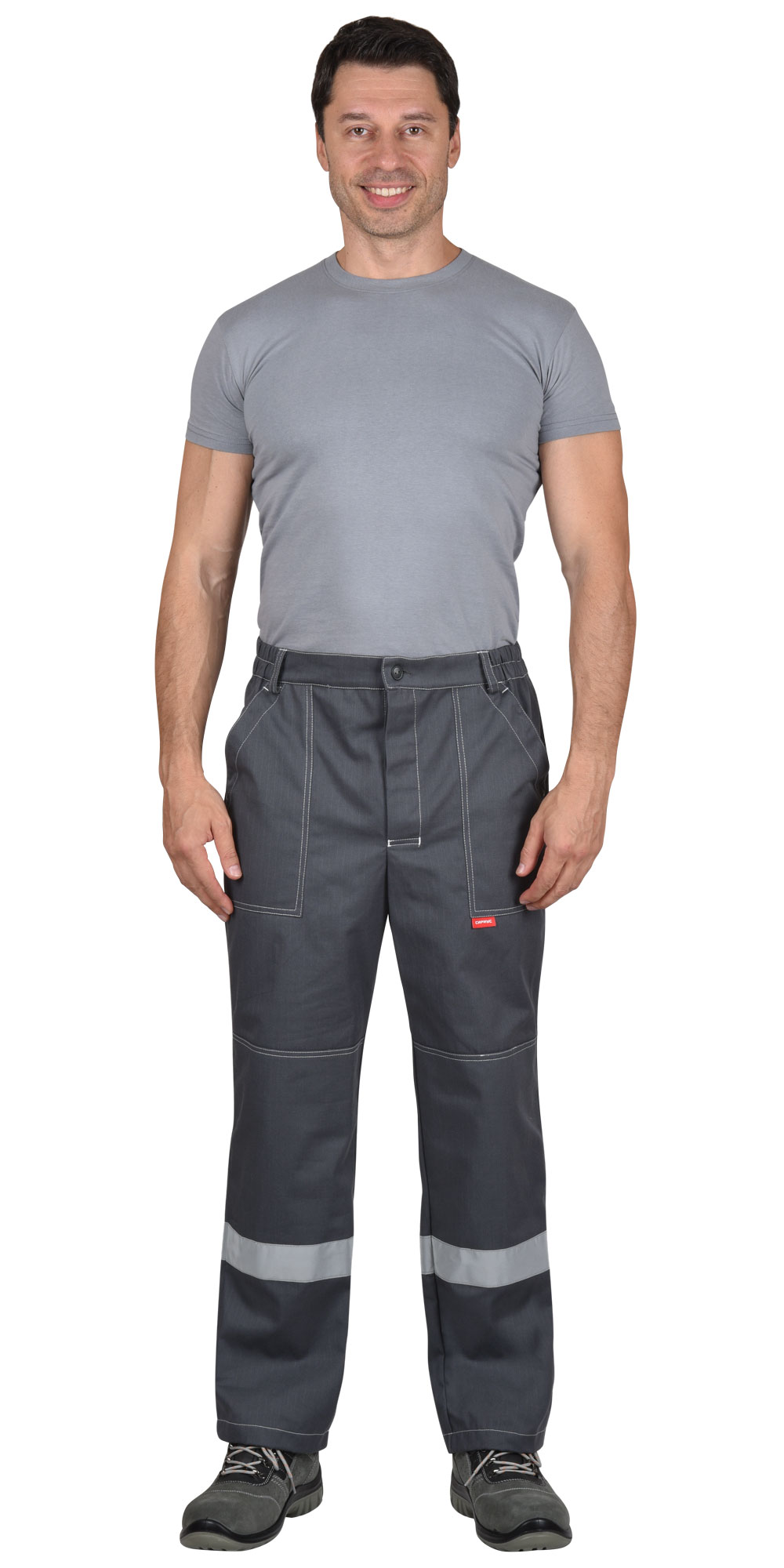 На брюках расположены светоотражающие элементы шириной 50 мм для повышения видимости в условиях плохого освещения. Это способствует дополнительной безопасности работника при выполнении задач в тёмное время суток или в условиях ограниченной видимости.