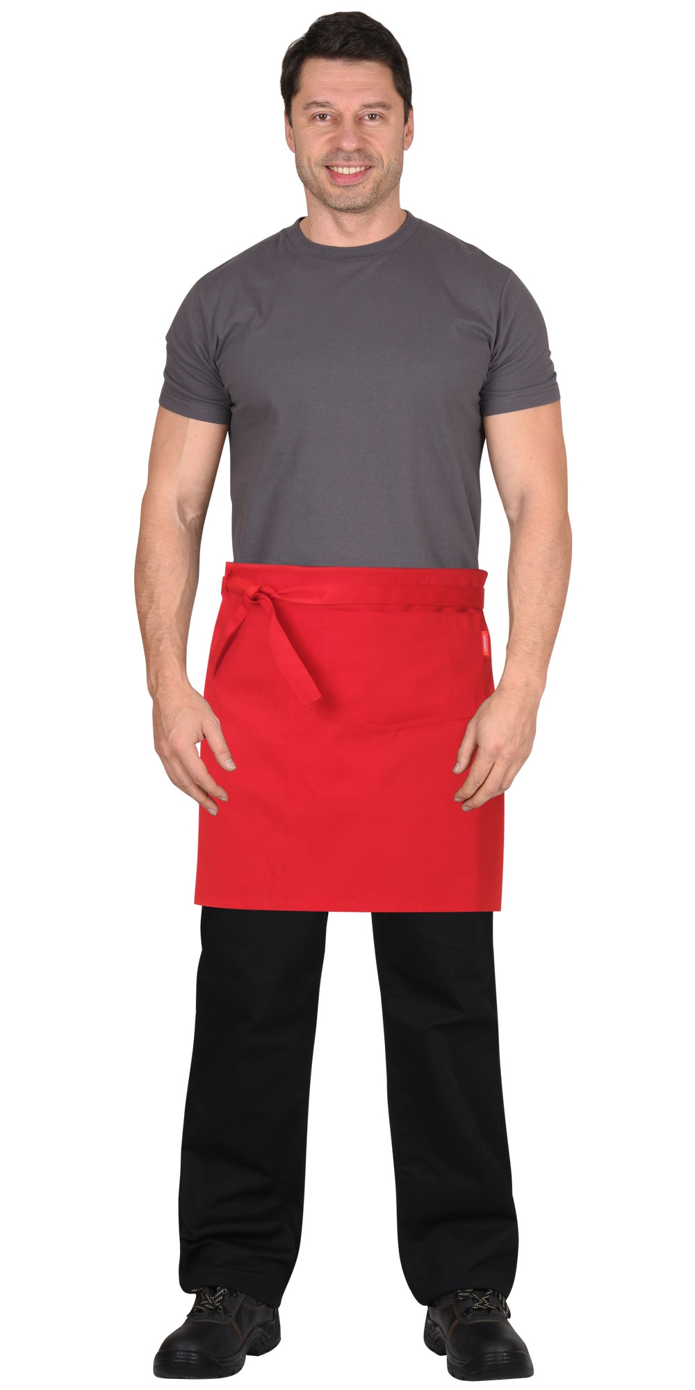 Фартук "БАРИСТА" в красном цвете идеально подходит для защиты передней и боковых частей корпуса сотрудников, работающих в сфере обслуживания.
