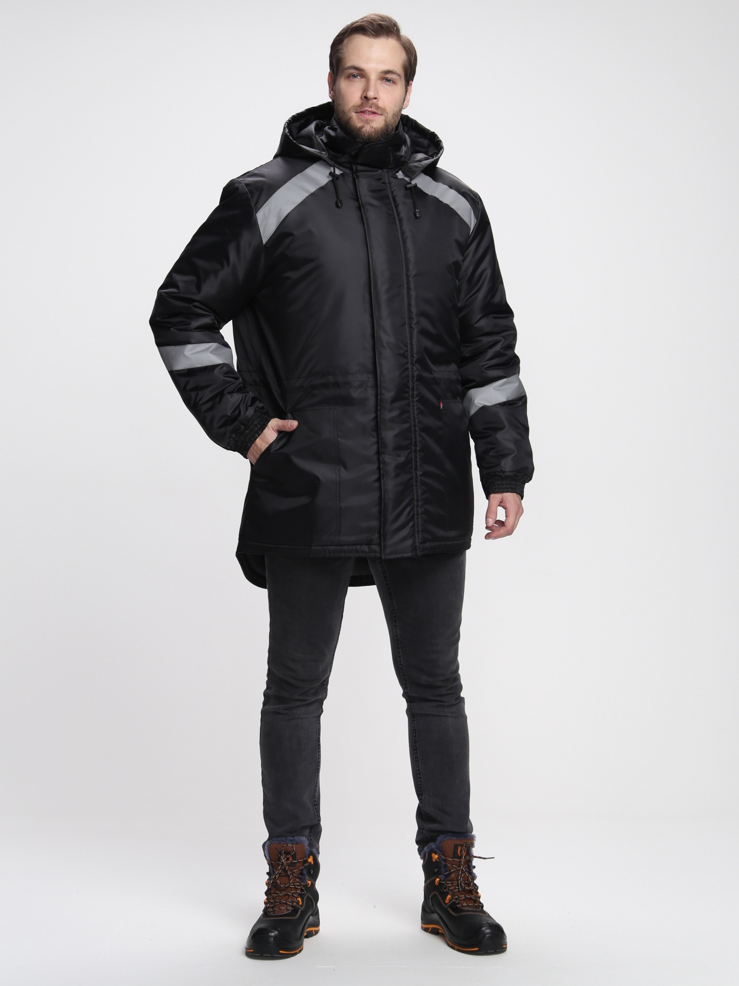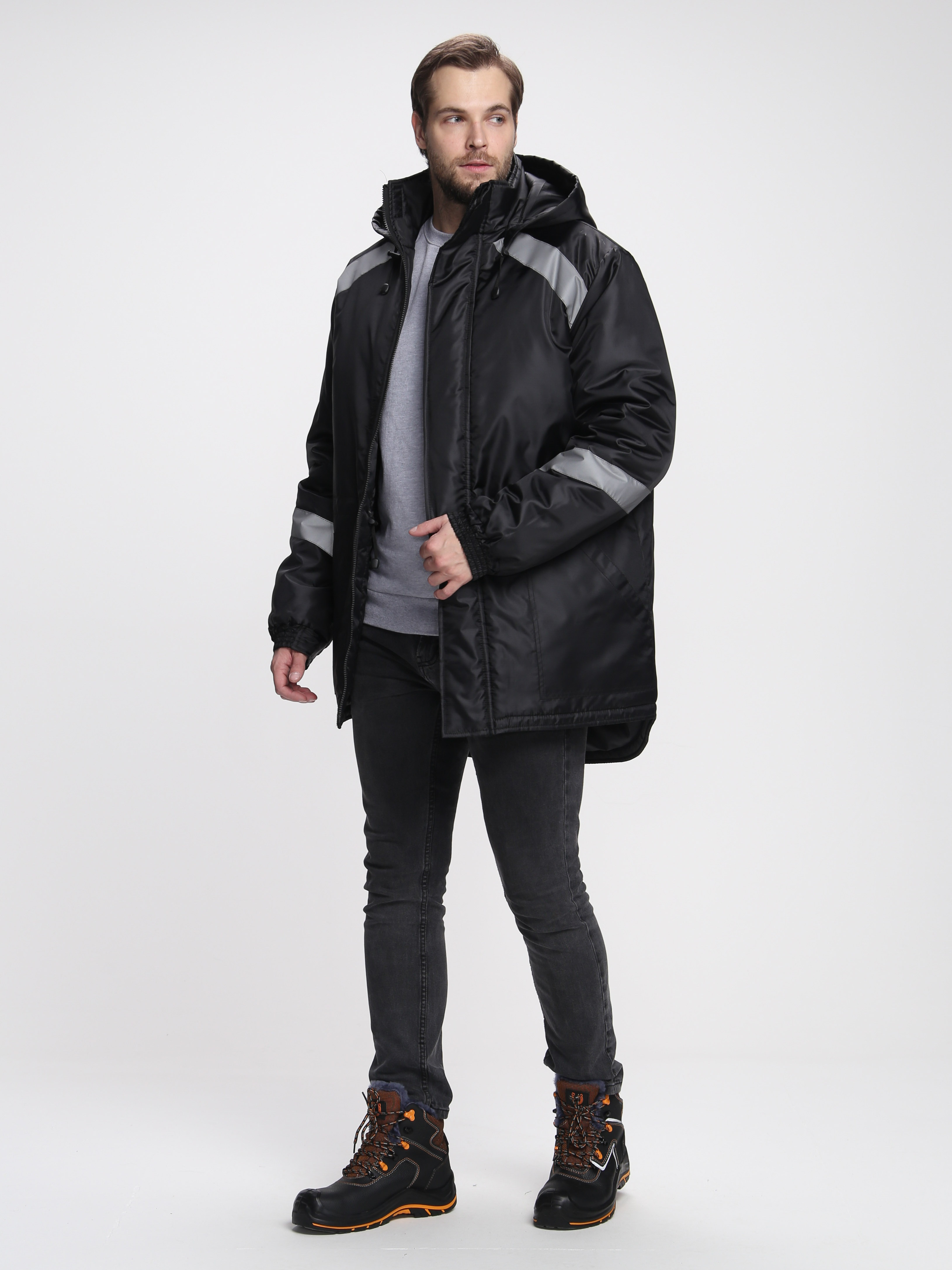 Утеплённая куртка "ПРОГРЕСС" в чёрном цвете – хороший вариант для зимнего рабочего гардероба. Модель подходит для работы в III-м и Особом климатических поясах (2 и 4 классы защиты от пониженных температур).