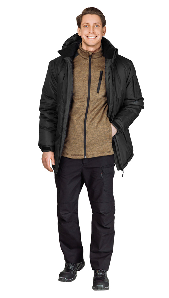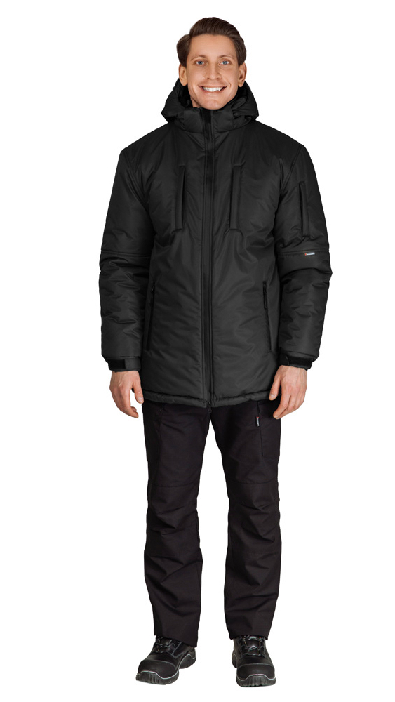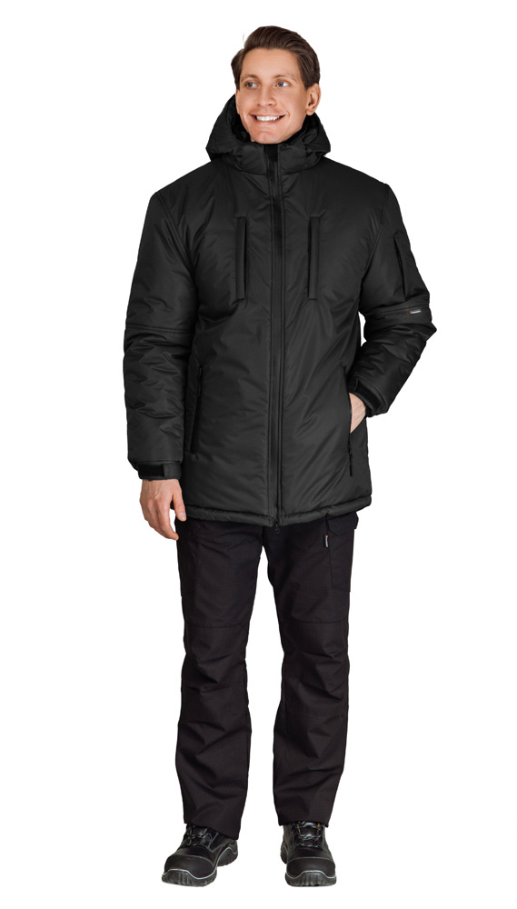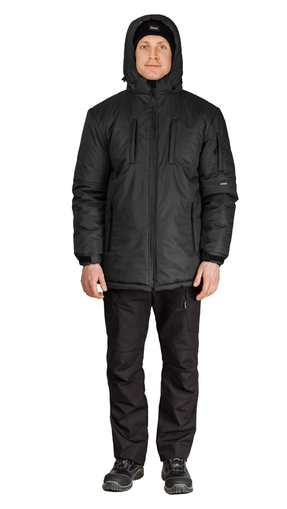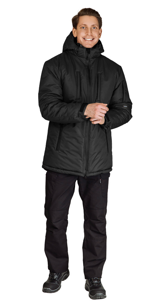 Утеплённая куртка "ВЕГАРД" в чёрном цвете станет отличным дополнением рабочего гардероба. Модель отлично подходит для интенсивного использования, имеет 2 класс защиты от пониженных температур и может использоваться в III-м климатическом поясе.