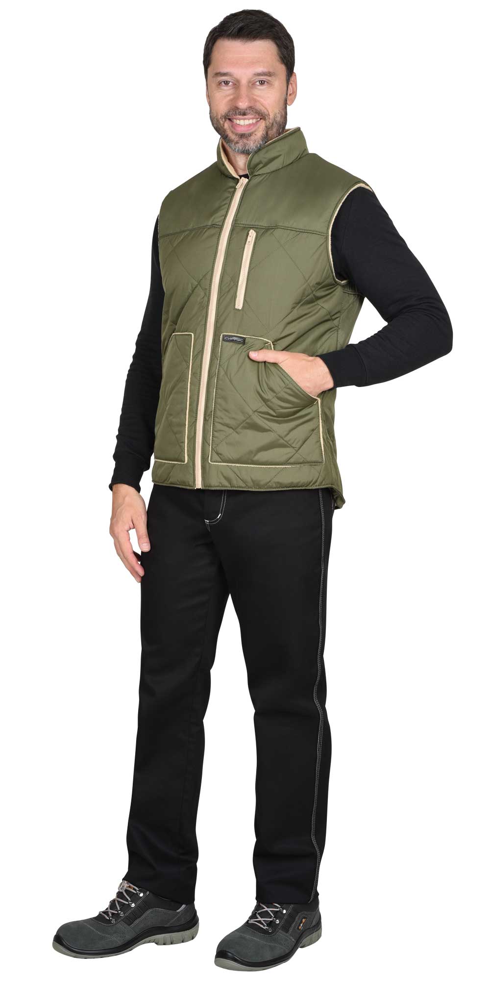 Утеплённый жилет "ЕВРОПА" в оливковом цвете – практичный вариант, обеспечивающий комфорт и тепло.