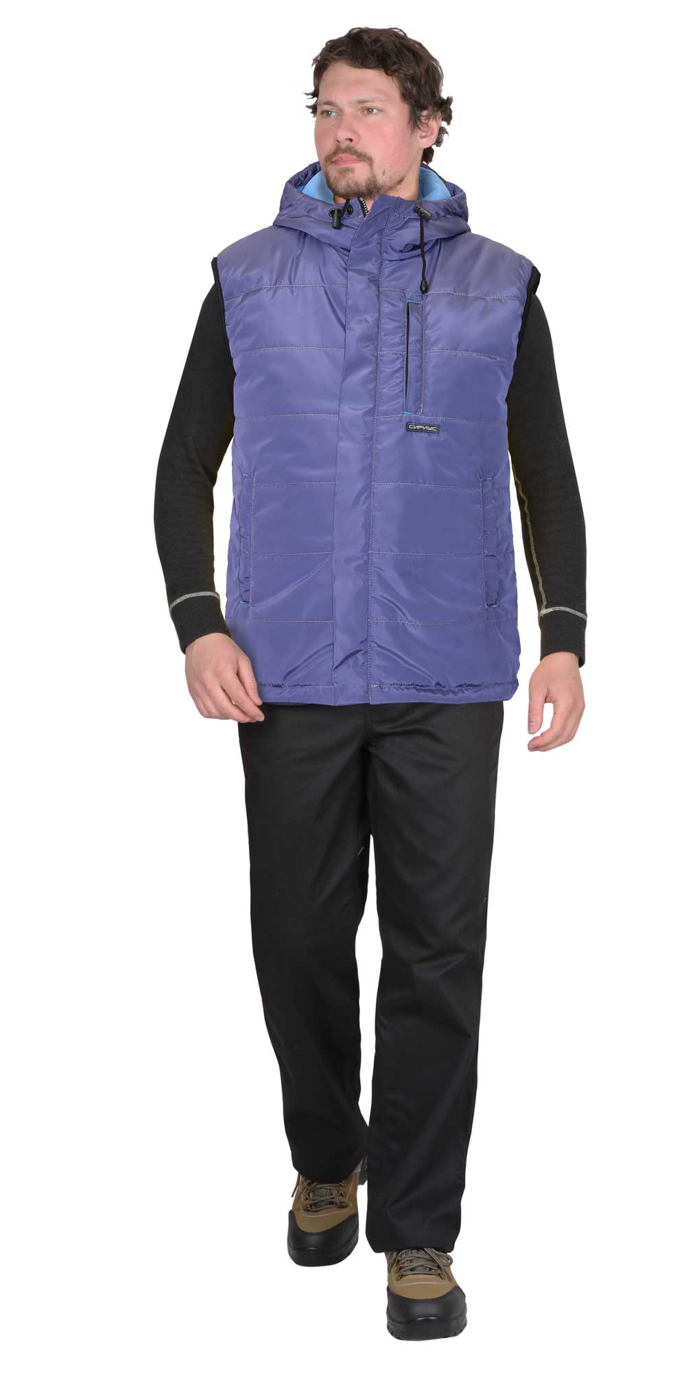 Универсальный жилет "ЗОДИАК" в цвете индиго сочетает в себе современный дизайн, удобство и практичность, что делает его надёжным и удобным выбором для активного досуга, а также работы в неотапливаемых помещениях или на открытом воздухе в осенне-зимний период.