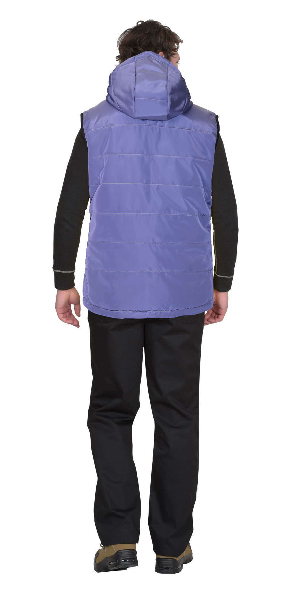 Удлинённая спинка обеспечивает дополнительную защиту поясничной зоны при наклонах и активных движениях. Втачной капюшон с регулировкой шнуром и фиксаторами позволяет точно подогнать его по форме лица работника, предотвращая его сползание даже при резких движениях.