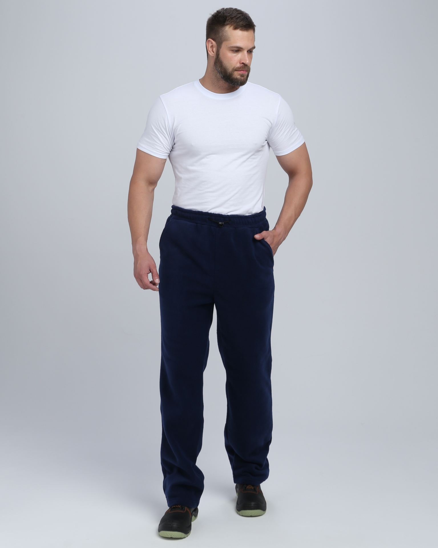 Брюки выполнены из флиса плотностью 280 г/м², состоящего из 100% полиэстера. Флис не вызывает аллергии и обладает антибактериальными свойствами, что делает ношение безопасным даже при длительном контакте с кожей. Структура материала обеспечивает свободную циркуляцию воздуха и сохраняет оптимальную температуру тела, исключая перегрев или переохлаждение.