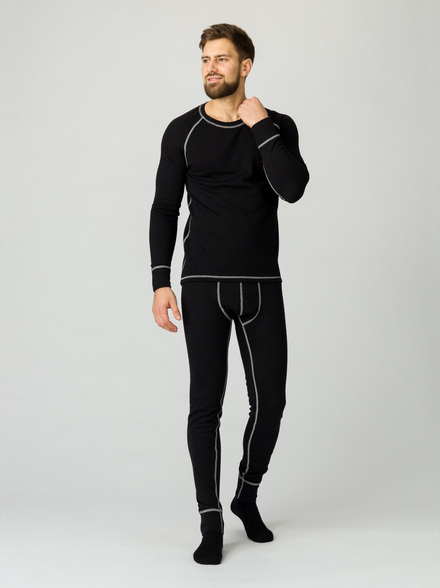 Внутренний слой термобелья выполнен из 100% хлопка, который обладает высокими гигиеническими свойствами, способствует воздухообмену, поддерживает стабильную температуру тела и устраняет накопление статического электричества.