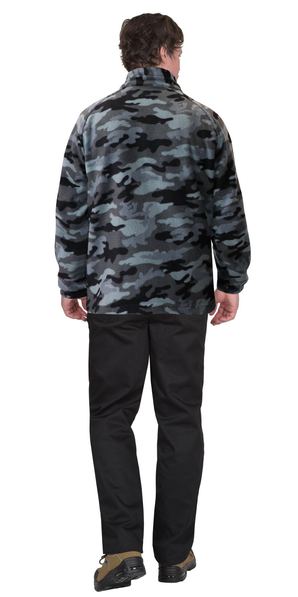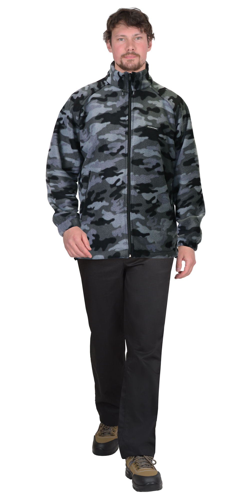 Флисовая куртка в темно-сером цвете с камуфляжным узором «Мультикам серый», идеально подходит для летнего периода.
