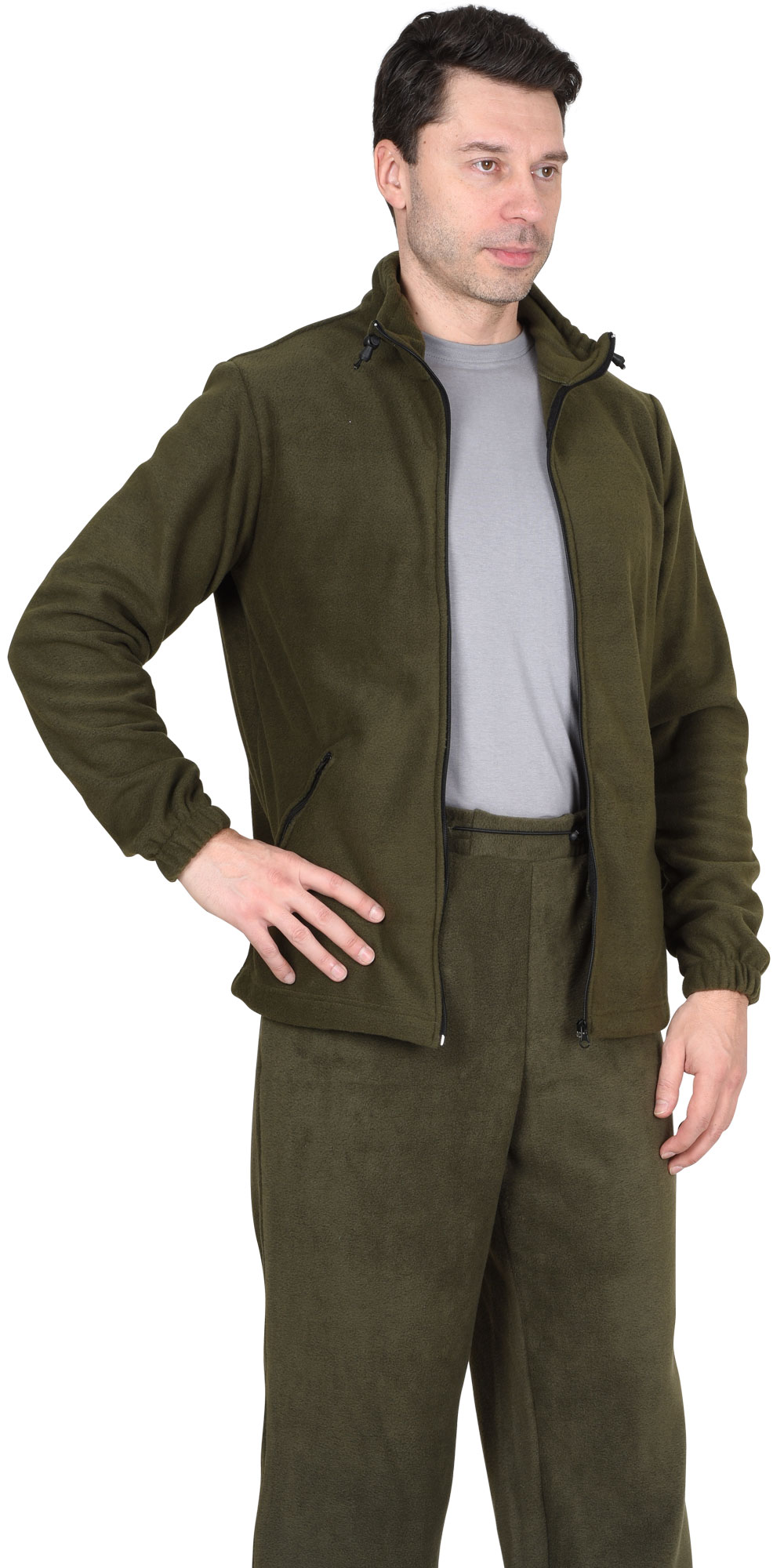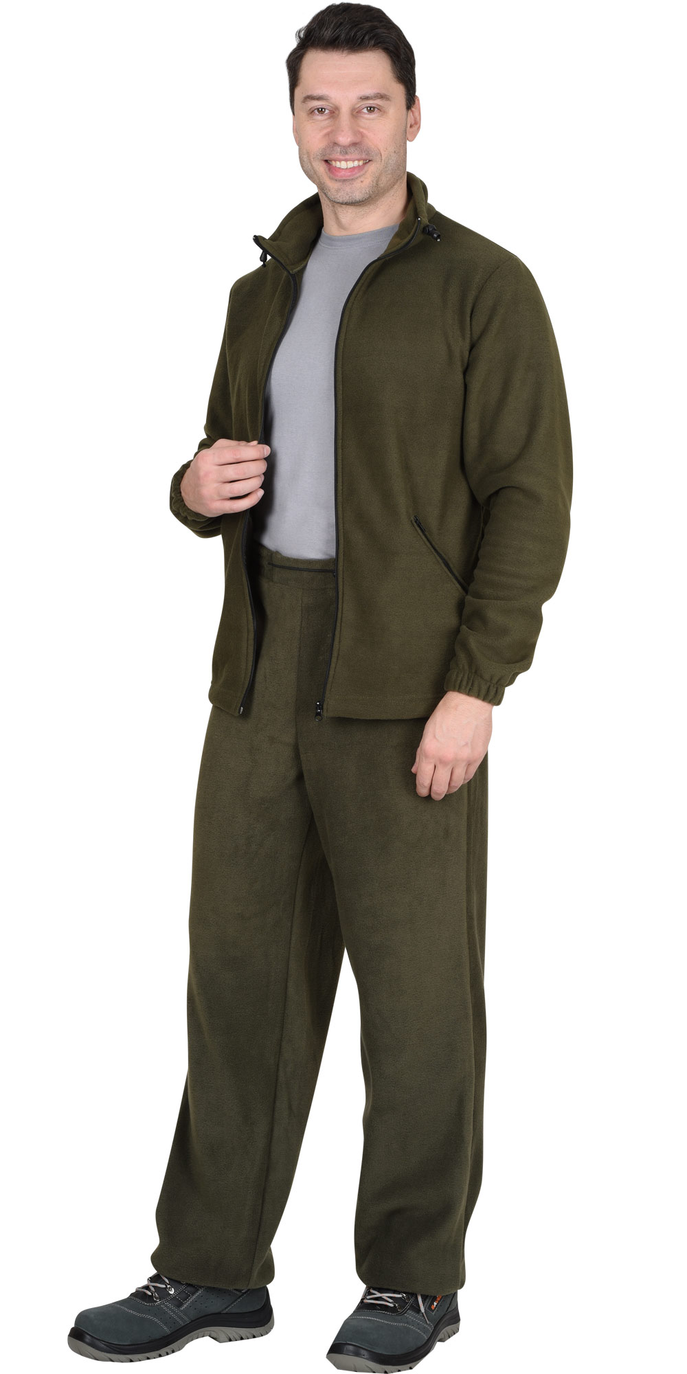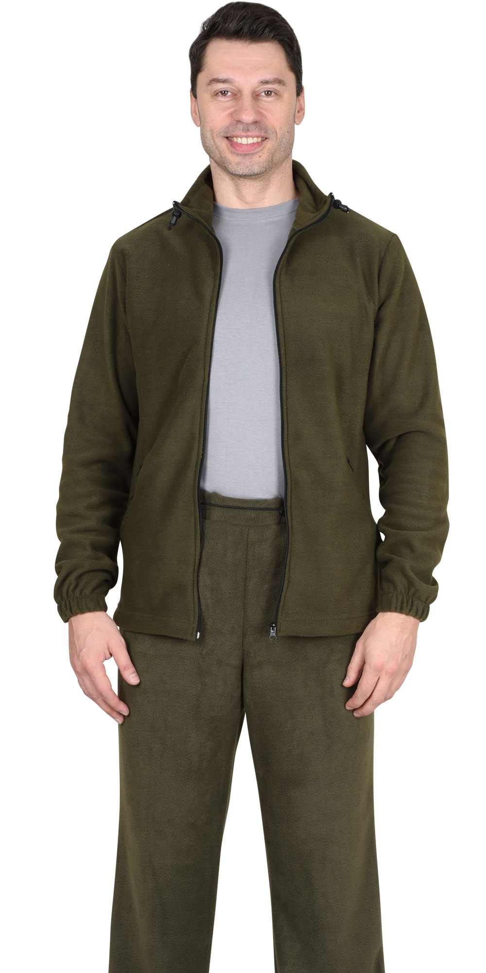 Мужская флисовая куртка в оливковом оттенке представляет собой сочетание функциональности и комфорта, обеспечивая оптимальный микроклимат для тела в различных погодных условиях.