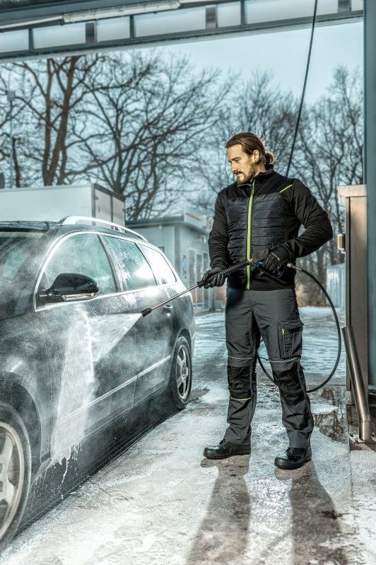 Ярко-зелёная центральная застёжка на молнию позволяет быстро застегнуть или расстегнуть куртку, добавляя удобство при использовании. Заслонка для защиты подбородка предотвращает контакт молнии с кожей работника, исключая дискомфорт во время носки.