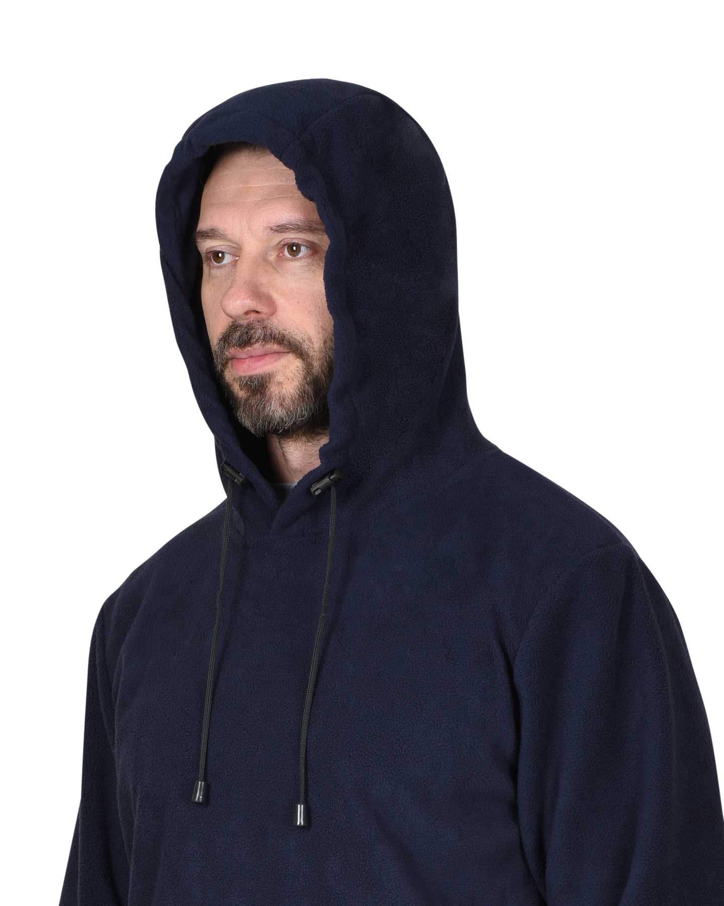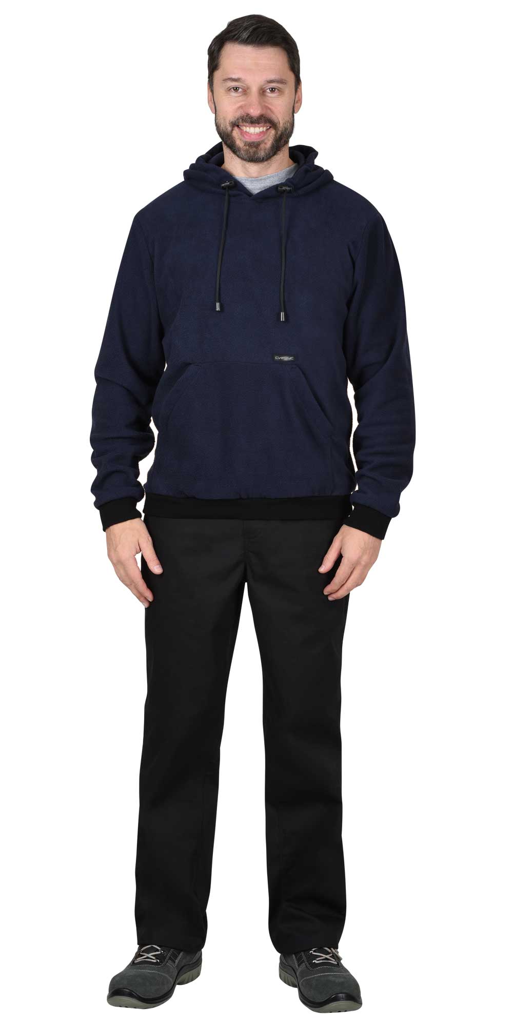 Темно-синяя толстовка изготовлена из высококачественного 100% полиэфирного флиса, предлагая сочетание инновационных технологий и практичности.