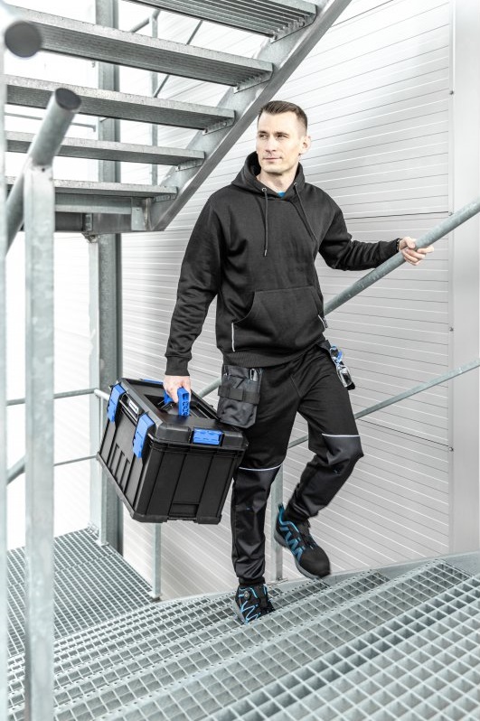 Толстовка НЬЕРС в чёрном цвете – практичное решение для работы и повседневной носки. Модель выполнена в современном спортивном стиле, что делает её универсальной для широкого спектра задач.