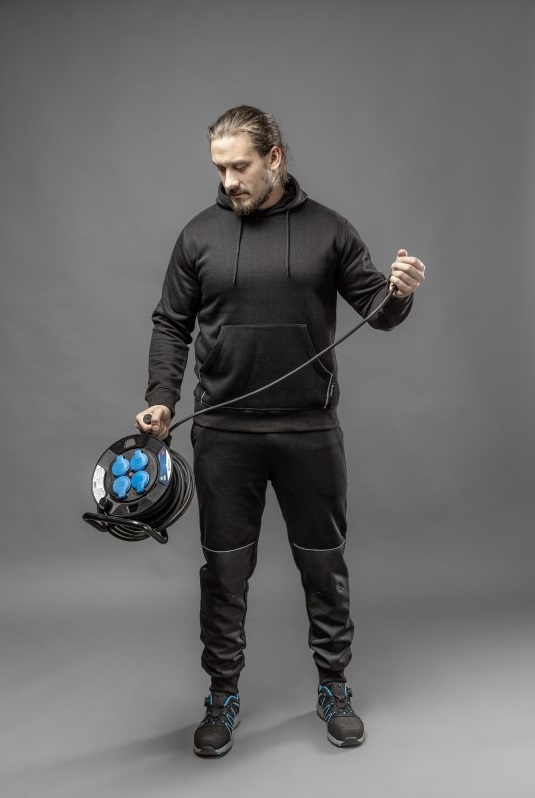 Боковой карман-кенгуру добавляет модели практичности, позволяя удобно хранить мелкие вещи, такие как телефон или рабочие аксессуары. Его сквозная конструкция обеспечивает дополнительный комфорт, позволяя быстро согреть руки.