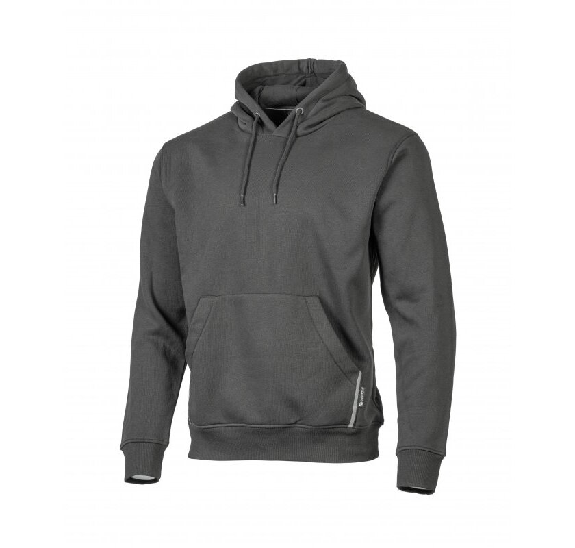 Боковой карман-кенгуру добавляет модели практичности, позволяя удобно хранить мелкие вещи, такие как телефон или рабочие аксессуары. Его сквозная конструкция обеспечивает дополнительный комфорт, позволяя быстро согреть руки.